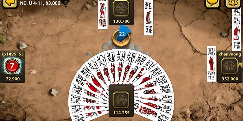 - Đánh bài: Trong mỗi lượt, người chơi phải đánh ra một quân bài từ bộ bài của mình. Quân bài này sẽ được đặt ngửa trên bàn để tất cả người chơi có thể nhìn thấy. Anh em nên chọn chọn quân bài không cần thiết hoặc không có khả năng kết hợp thành chắn hay cạ để đánh.