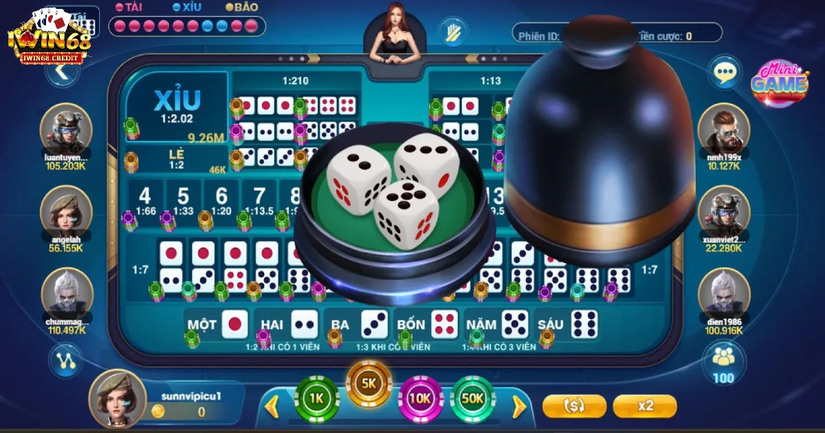 Sicbo là gì? Về cơ bản, đây là một trò chơi cá cược mang phong cách cổ điển xuất phát từ Trung Quốc, thường được chơi với ba viên xúc xắc. Mục tiêu của trò chơi tại iWin68 là dự đoán kết quả của những viên xúc xắc này. Sự hấp dẫn của sicbo nằm ở khả năng mở rộng của nó – từ việc lựa chọn số cụ thể cho đến cược tổng hợp, mọi người đều có thể tìm thấy một cách chơi phù hợp với sở thích của mình.